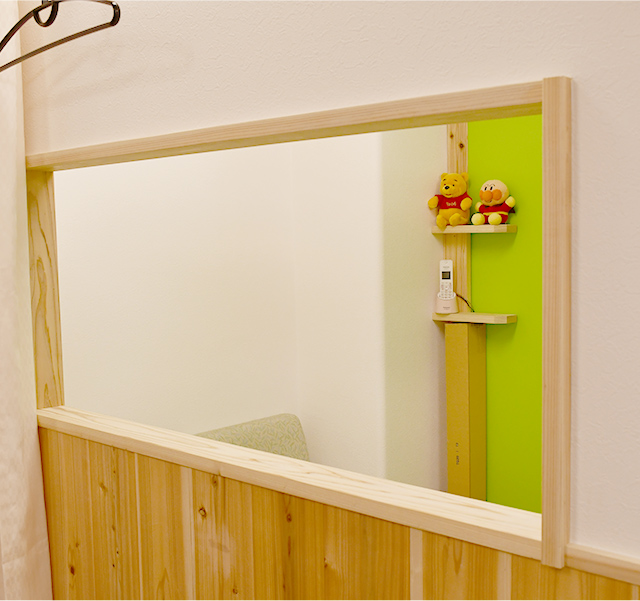 - 個室は、子供が楽しめる雰囲気と、窓を設けることで親との会話も可能です。